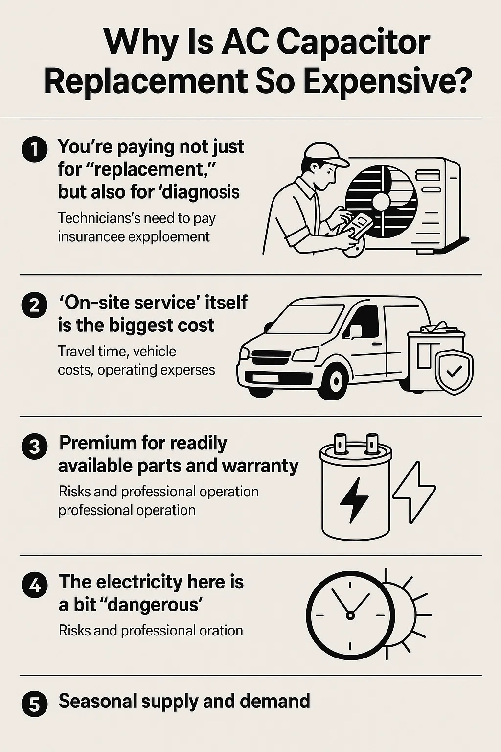 من المحتمل أن العديد من الأشخاص الذين استبدلوا مكثفات مكيف الهواء لديهم قد تساءلوا: لماذا هذا الجزء الأسطواني الصغير - مكثف التيار المتردد - هل هو غير مكلف للغاية عندما أبحث عنه عبر الإنترنت، لكن الفاتورة تكون أعلى عدة مرات عندما يأتي فني ليحل محله؟